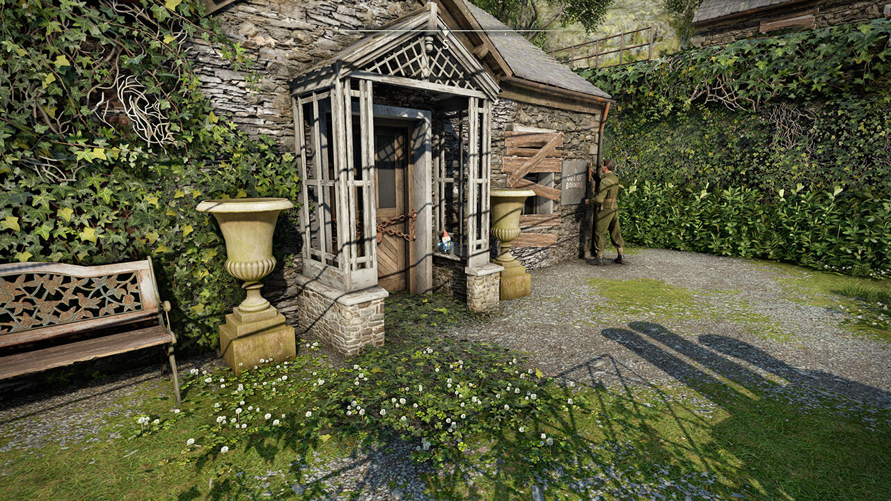 از پشت خانه به جاده برگردید و به راست بروید. پس از ایستگاه اتوبوس، مسیر را ادامه دهید تا به انتهای جاده برسید. به راست بپیچید و جاده خاکی را دنبال کنید تا به ساختمان سنگی کوچکی در سمت چپ برسید. دور تا دور ساختمان بروید تا گنوم را روی نیمکت زیر پنجره پیدا کنید. حسابی او را بزنید!