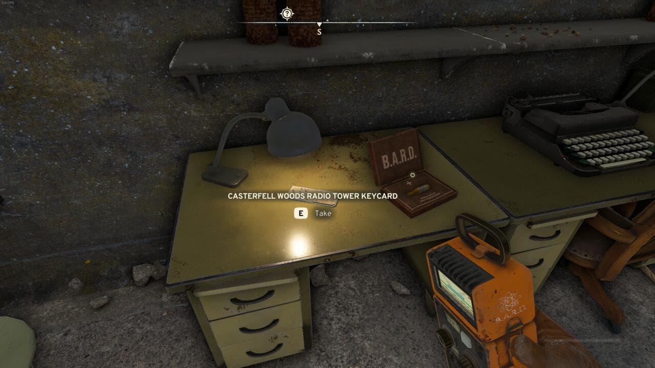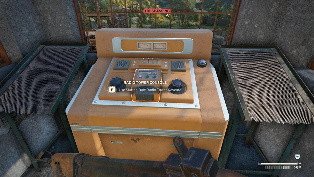 برای فعال کردن Radio Tower، به Slatten Dale Radio Tower Keycard احتیاج دارید. این کارت در همان نزدیکی برج است، اما ابتدا باید وارد یک غار کوچک شوید. از محل برج به سمت جنوب بروید تا به یک رودخانه در پایین صخره برسید.